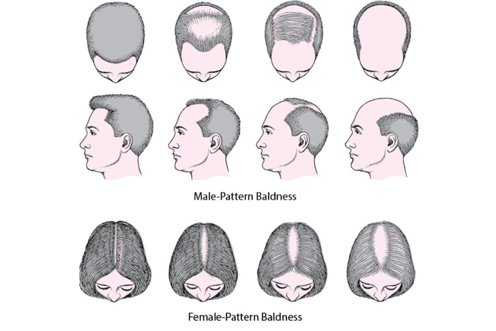- ผู้ชาย: มักเกิดผมร่วงบริเวณหน้าผากและกระหม่อม จนกลายเป็นรูปตัว M หรือล้านหัวหน้า
