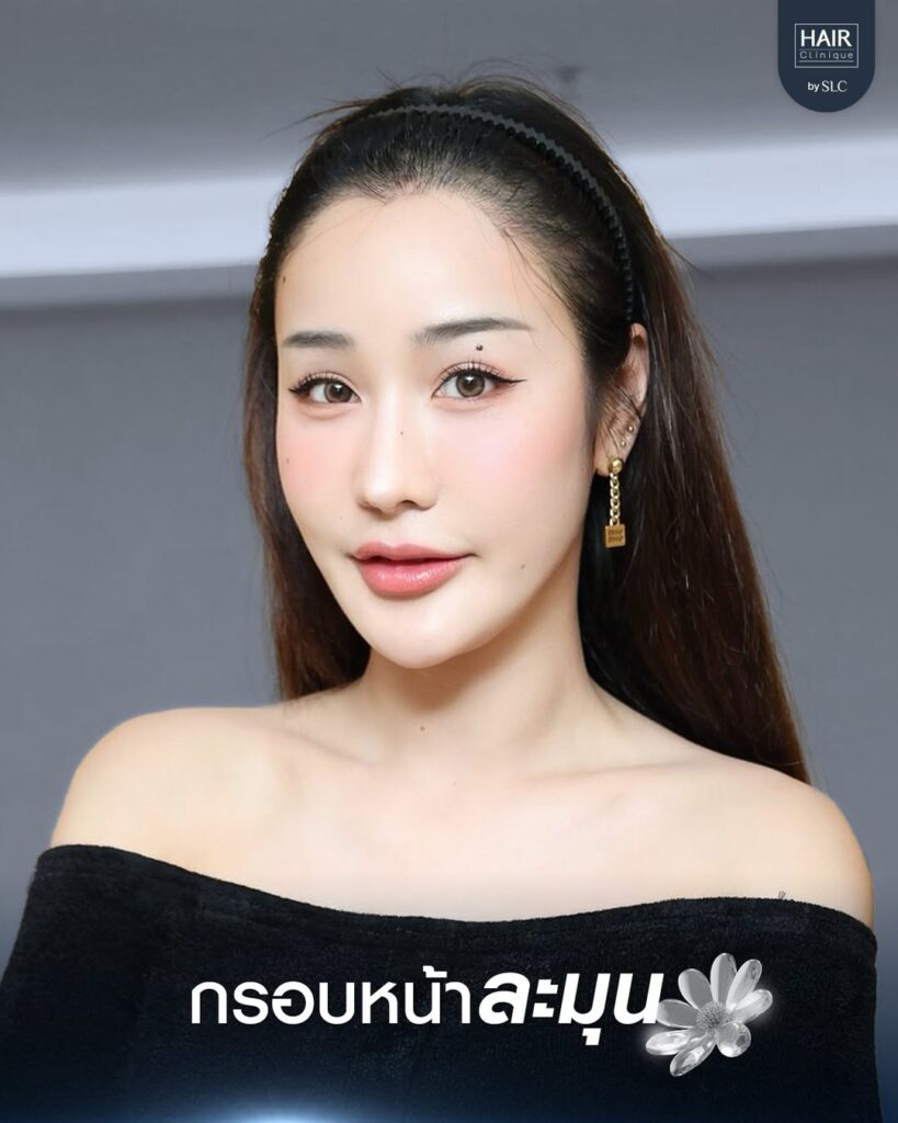 หน้ารูปไข่ แต่กรอบหน้าไม่ชัด ขอจบปัญหาด้วย ปลูกผมแนวไรผมทรงดอกไม้