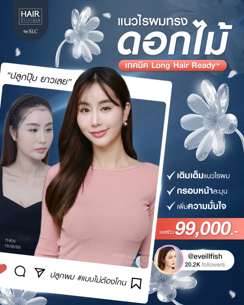 บทความนี้จะพาคุณไปรู้จักกับเรื่องราวจริงของ “คุณอีฟ” ผู้หญิงที่ตัดสินใจ ปลูกผมแนวไรผมทรงดอกไม้ เพื่อแก้ปัญหาหน้าผากแหว่งและปรับกรอบหน้าให้ดูละมุนขึ้น พร้อมรีวิวผลลัพธ์ตั้งแต่วันแรกจนถึงหลังทำ 14 วัน ว่าการปลูกผมที่ออกแบบมาเพื่อผู้หญิง สามารถเปลี่ยนความมั่นใจได้จริงหรือไม่