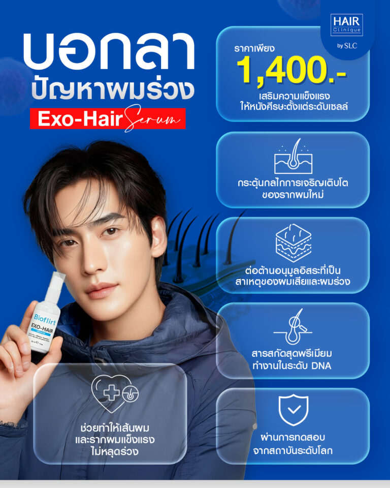 สำหรับคนที่ต้องการผลลัพธ์ที่ชัดเจนและเร็วขึ้น BioFlirt Leuco-Exo Hair Serum Spray สามารถใช้หลังทำหัตถการในคลินิกได้หากคุณหมอไม่ได้ให้คำแนะนำอื่นๆ ไม่ว่าจะเป็น