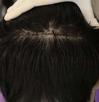 4. การปิดแผลด้วย Trichophytic Closure เป็นเทคนิคการเย็บแผลที่ช่วยให้แนวแผลเป็นเส้นบาง และมีโอกาสให้เส้นผมงอกผ่านรอยแผล ทำให้สามารถปกปิดรอยแผลได้ดีเมื่อผมยาวขึ้น